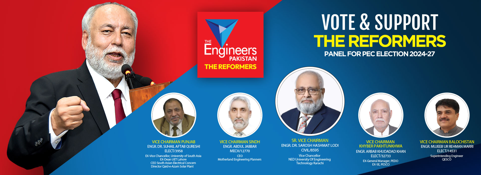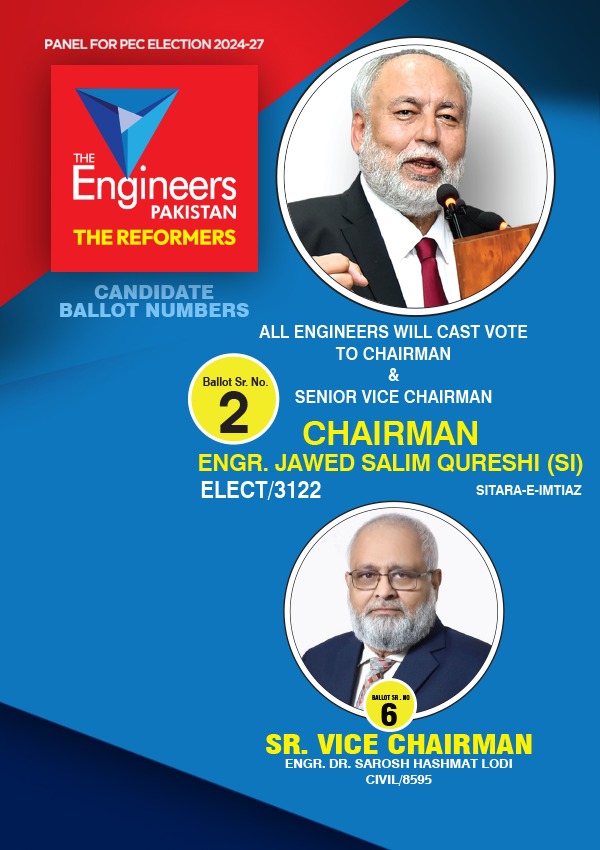 “Chairman The Engineers Pakistan, Engr. Jawed Salim Qureshi is a reformer, a philanthropist having diversified experience of over 35 years in various disciplines. He is Former President, Student Union 1978-1979, University of Engineering & Technology Lahore”.